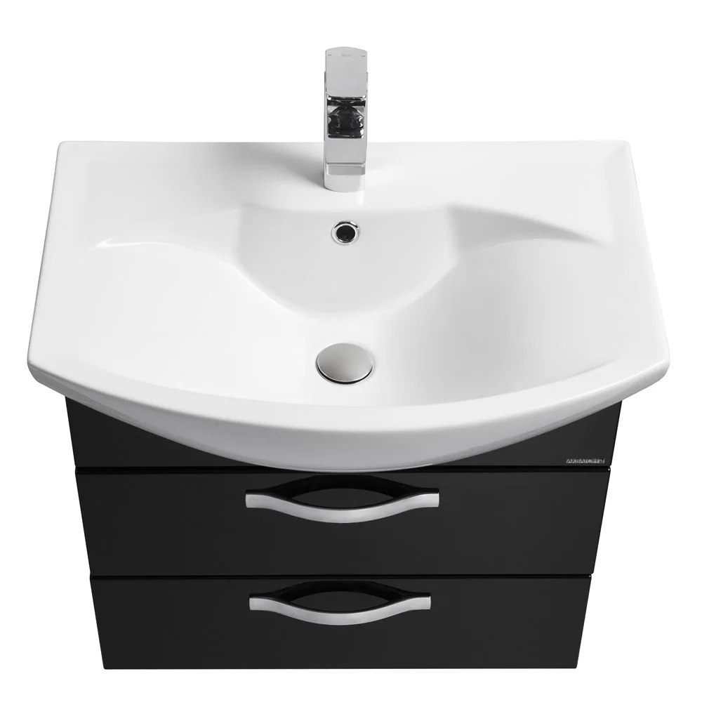Тумба Ария 65 M в современном стиле выполнена из влагостойкой ламинированной плиты, высококачественной MDF и окрашена с высокой степенью глянца полиэфирной краской ультрафиолетового отверждения. Данный способ окрашивания обеспечивает изделию привлекательный внешний вид, а также износостойкость и долговечность. Тумба содержит два вместительных ящика и комплектуется белоснежной раковиной от бренда Santek.