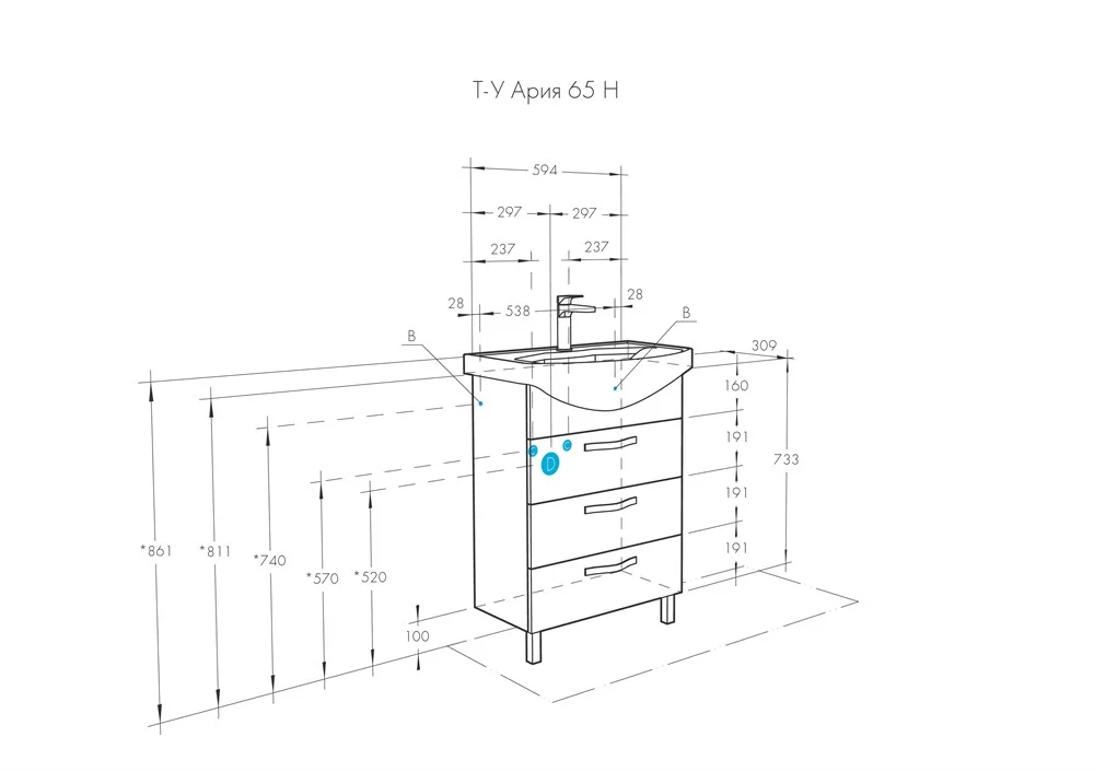 Тумба Ария 65 H в современном стиле выполнена из влагостойкой ламинированной плиты, высококачественной MDF и окрашена с высокой степенью глянца полиэфирной краской ультрафиолетового отверждения.