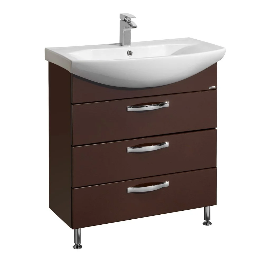 Тумба Ария 80 H в современном стиле выполнена из влагостойкой ламинированной плиты, высококачественной MDF и окрашена с высокой степенью глянца полиэфирной краской ультрафиолетового отверждения. Данный способ окрашивания обеспечивает изделию привлекательный внешний вид, а также износостойкость и долговечность. Тумба содержит три ящика и комплектуется белоснежной раковиной от бренда Santek.