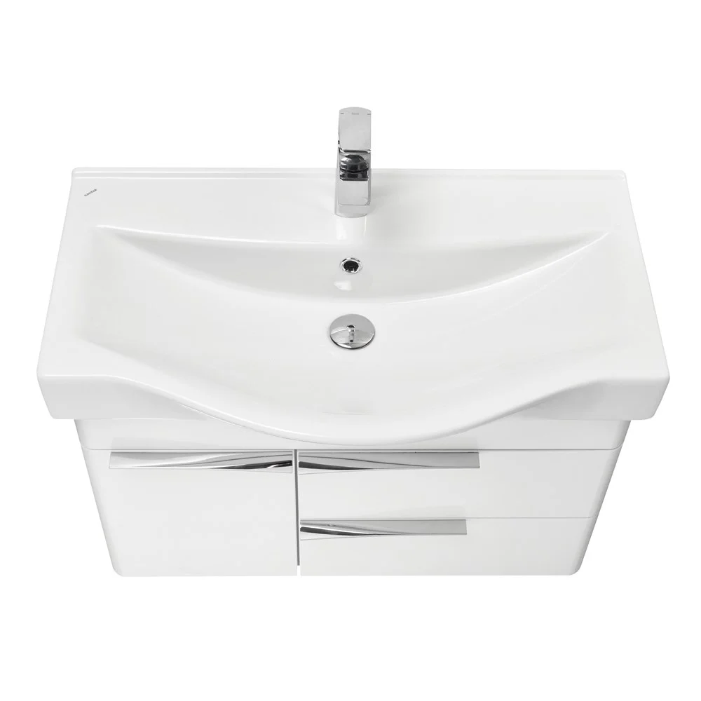 Тумба Беверли в современном стиле, выполненная из влагостойкой ламинированной плиты и высококачественной MDF, обладает удобным функционалом. Слева за распашным фасадом-створкой находится вместительная ниша с регулируемой полкой из влагостойкой ламинированной плиты, а справа размещены два ящика, в которых поместятся необходимые в ванной комнате принадлежности. Петли снабжены доводчиками, а ящики – интегрированной системой плавного закрывания для комфорта и удобства потребителя. Изящные ручки в цвете глянцевый хром идеально сочетаются с линиями белоснежной керамической раковины Беверли бренда Santek. Тумба окрашена в белый цвет с высокой степенью глянца, что обеспечивает изделию привлекательный внешний вид, а также износостойкость и долговечность.