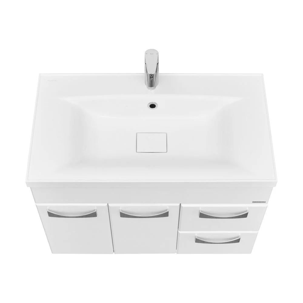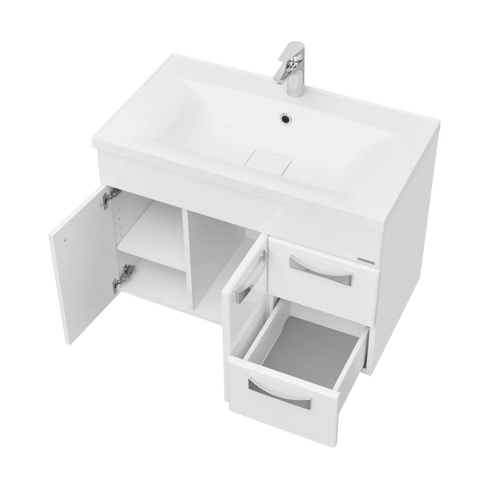 Лаконичная прямоугольная модель, с изящной ручкой и удобной прямоугольной раковиной из литого мрамора. Зеркало оснащено подсветкой и системой ANTI- STEAM. В тумбе за распашными фасадами - ниша для больших предметов, а справа - два выдвижных ящика. Для полотенец и бытовой химии предлагается дополнительный шкаф-колонна, который оснащен навесами с обеих сторон и легко превращается из левого в правый простым переворотом. Помимо стандартного подключения водоснабжения и канализации из стены предусмотрена возможность подключения снизу - в нижней панели тумбы и за полкой для труб специально оставлено место.