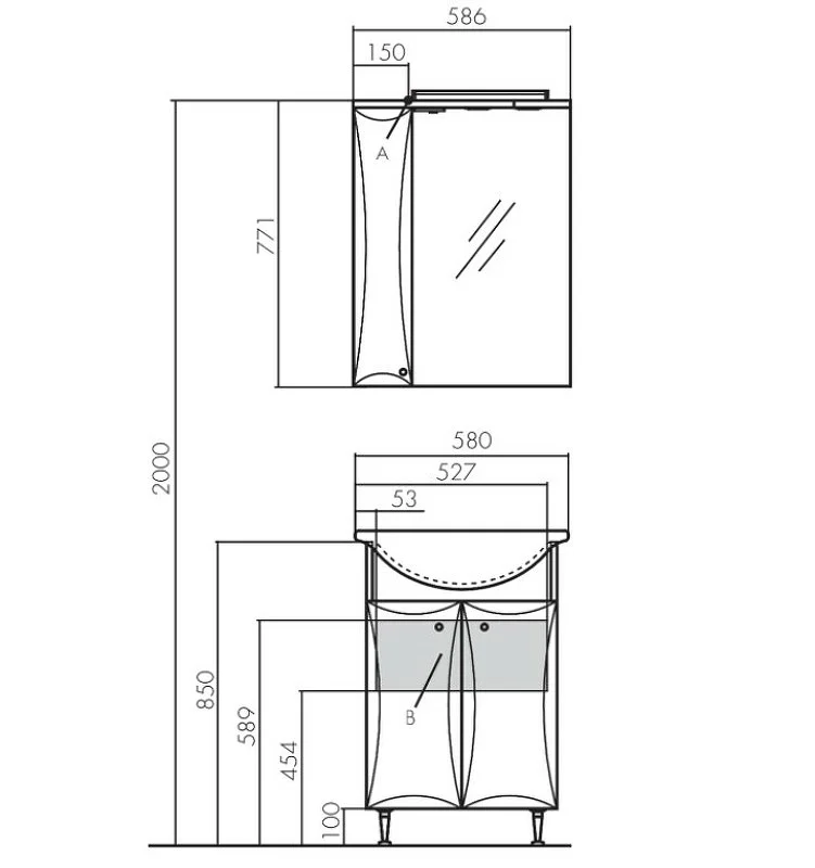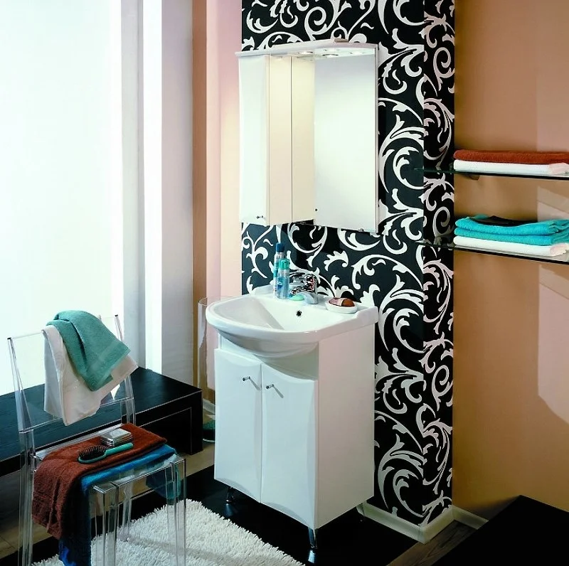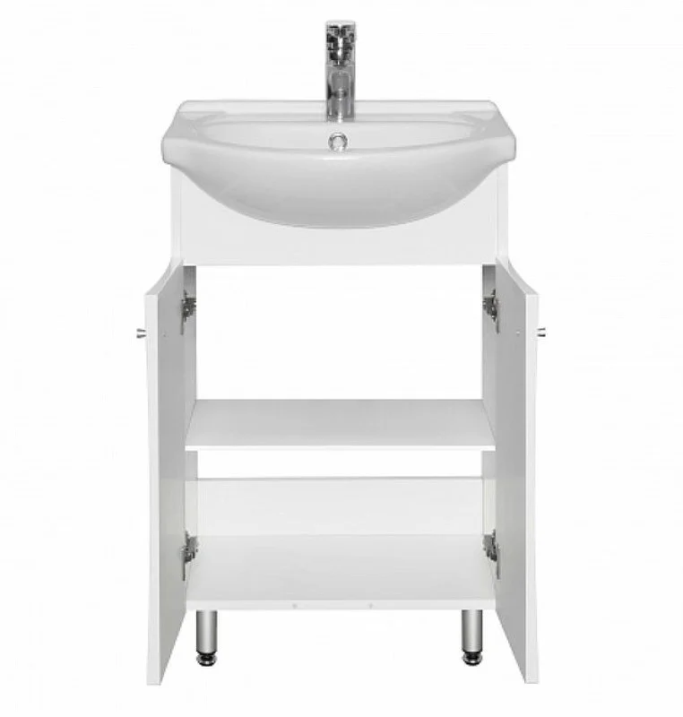 Эта коллекция для небольших ванных комнат выполнена в строгом традиционном стиле и белом цвете. В тумбе за распашными фасадами установлена регулируемая по высоте полка. В зеркале предусмотрена верхняя панель с подсветкой, а за фасадом установлена полка. Тумба имеет 3 варианта исполнения, два из которых (ДЖИММИ 57 М и ДЖИММИ 57 У) - с распашными фасадами, отличающимися по форме, а также вариант с выдвижным ящиком внизу справа (ДЖИММИ 57). Все тумбы этой коллекции комплектуются регулируемыми по высоте ножками.