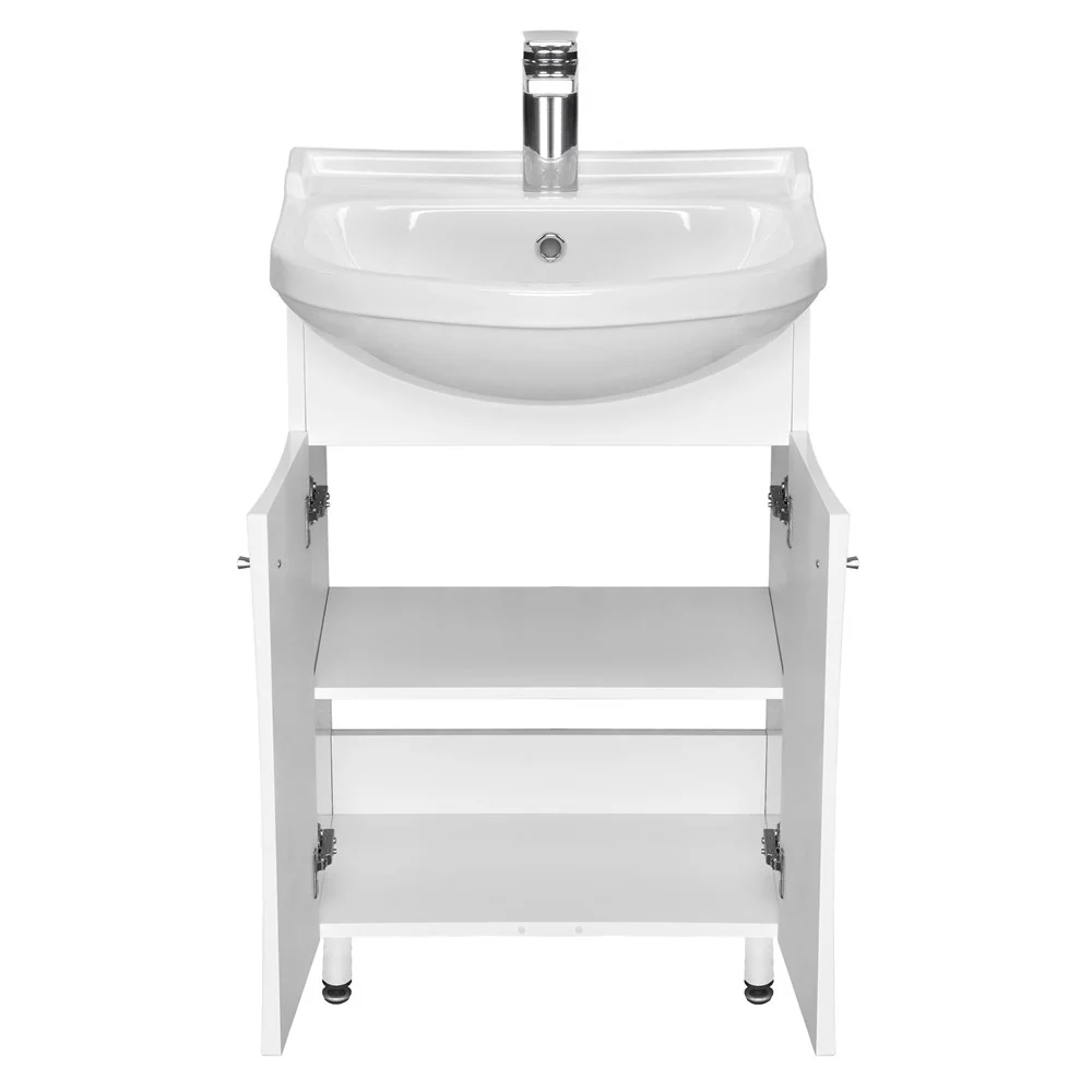 Эта коллекция для небольших ванных комнат выполнена в строгом традиционном стиле и белом цвете. В тумбе за распашными фасадами установлена регулируемая по высоте полка. В зеркале предусмотрена верхняя панель с подсветкой, а за фасадом установлена полка. Тумба имеет 3 варианта исполнения, два из которых (ДЖИММИ 57 М и ДЖИММИ 57 У) - с распашными фасадами, отличающимися по форме, а также вариант с выдвижным ящиком внизу справа (ДЖИММИ 57). Все тумбы этой коллекции комплектуются регулируемыми по высоте ножками.