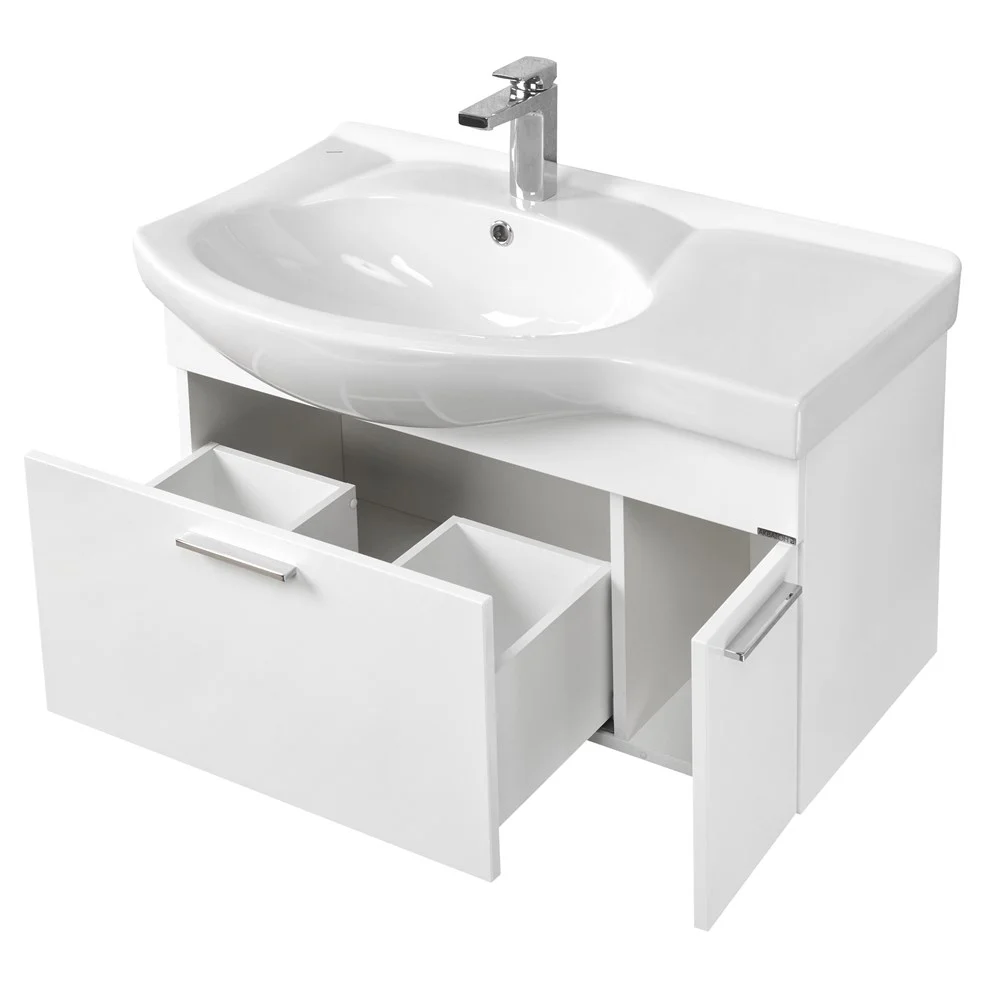 ИНДИ - коллекция, разработанная для тех, кто ценит комфорт и лаконичный дизайн. Все предметы коллекции характеризуются сочетанием тонких и простых линий. Тумба комплектуется керамической раковиной с большой удобной чашей. Боковая поверхность справа от чаши позволит разместить предметы, которые всегда должны быть под рукой. Плавные линии раковины повторяет полочка зеркала, на которой также можно разместить необходимые аксессуары для ванной комнаты. Большое зеркало по желанию можно дополнить светильником. Тумба очень вместительна и функциональна. Глубина ящиков без труда позволяет размещать высокие бутылочки и баночки, а встроенный механизм плавного закрывает обеспечивает мягкий и бесшумный ход ящика. За створкой фасада - дополнительное место хранение. Дополняет коллекцию шкаф-колонна с большим выдвижным ящиком и фасадом-створкой в верхней части, за которым установлены регулируемые по высоте полки. В нижней части шкафа расположена вместительная бельевая корзина. Шкаф-колонна универсален. Верхний фасад-створка