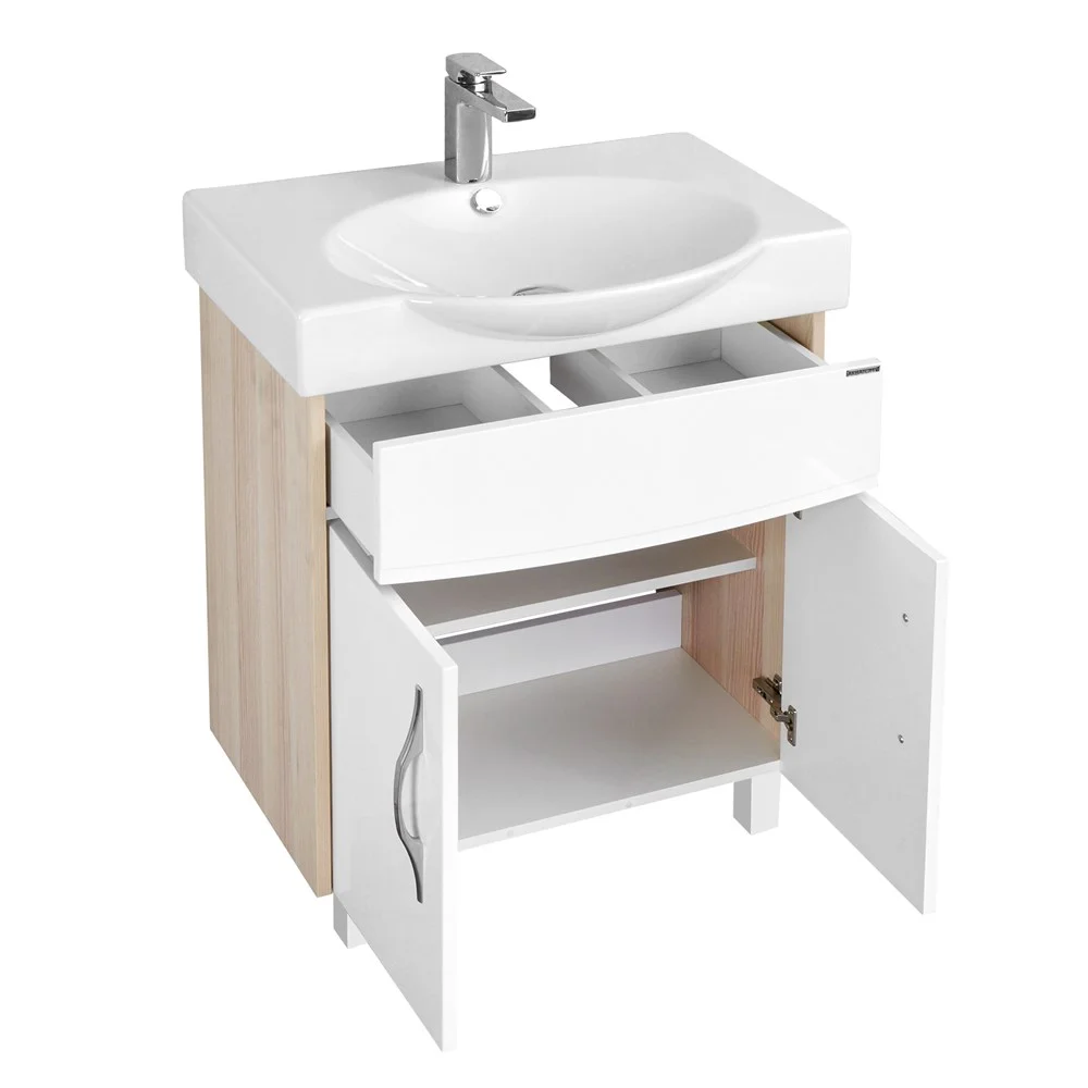 ИНФИНИТИ - стильная лаконичная модель, которая прекрасно впишется в ванную комнату любого размера. В подвесной тумбе два ящика, фасадные линии которых повторяют чашу раковины и лицевой фурнитуры. По желанию тумбу можно комплектовать вместительным зеркальным шкафом или изящным зеркалом. Зеркало снабжено led подсветкой и выключателем. За фигурным фасадом зеркального шкафа расположены, регулируемые по высоте, стеклянные полки. Все ящики снабжены системой плавного закрывания. Мебель украшают изящные ручки бельгийского производителя METAKOR.
