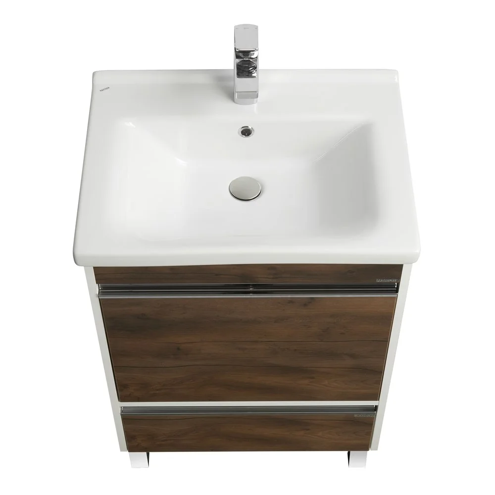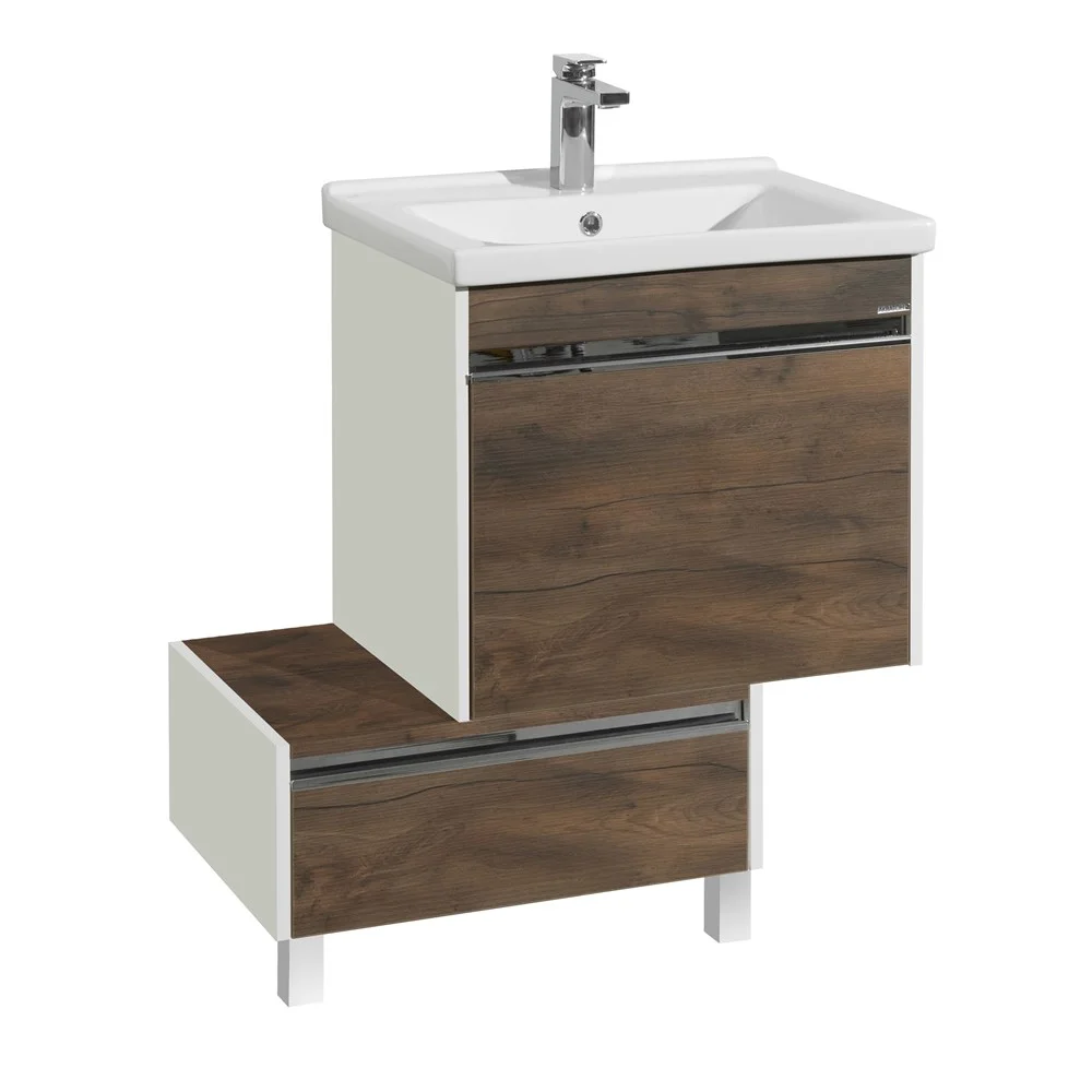 Коллекция выполнена в двух популярных размерах 600 мм и 800 мм. В размере 600 мм к тумбе предлагается зеркальный шкафчик, а в размере 800 мм - зеркало.