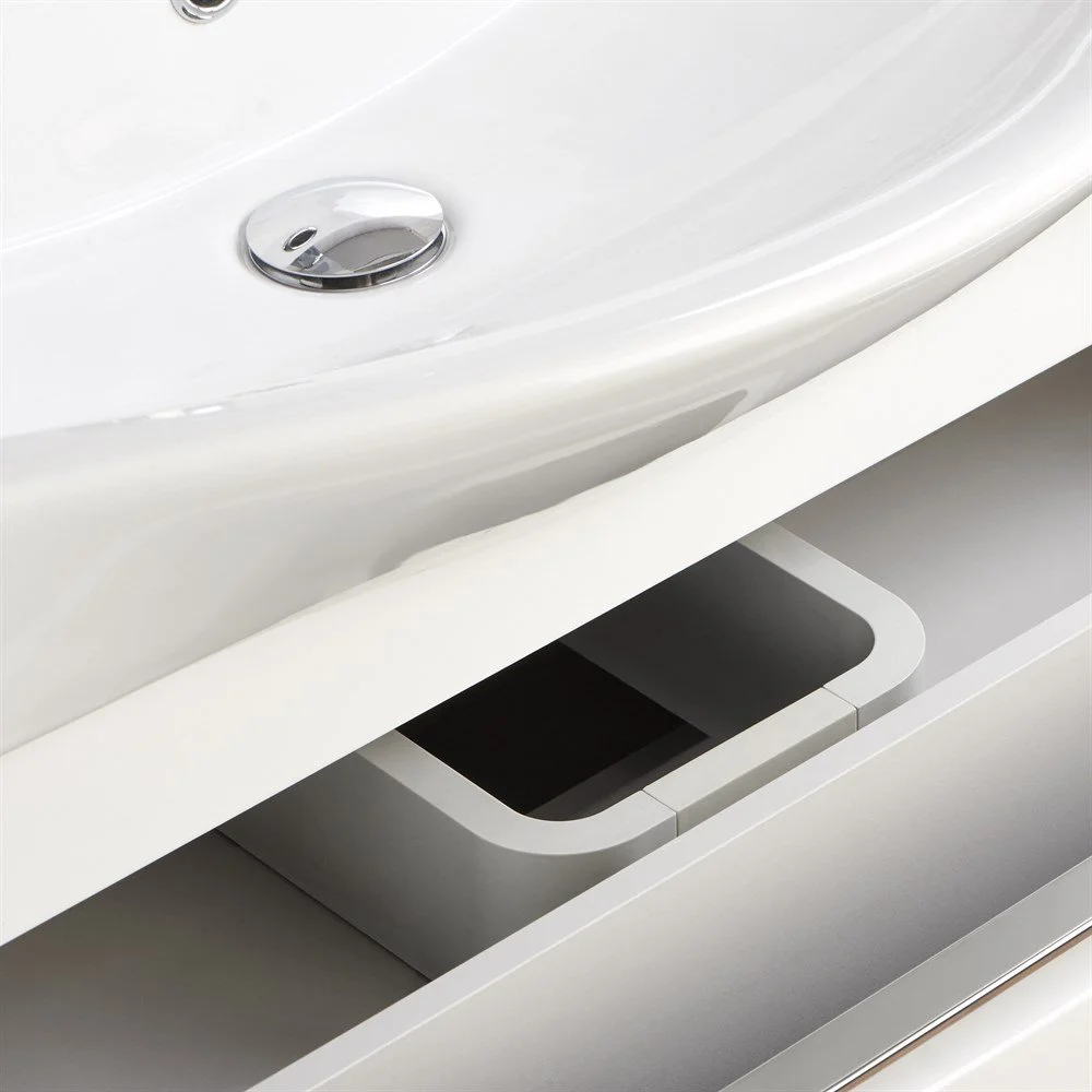 Коллекция Капри сочетает в себе современные тенденции мебели для ванных комнат: удобные профильные ручки, интегрированные в фасад, светодиодную подсветку