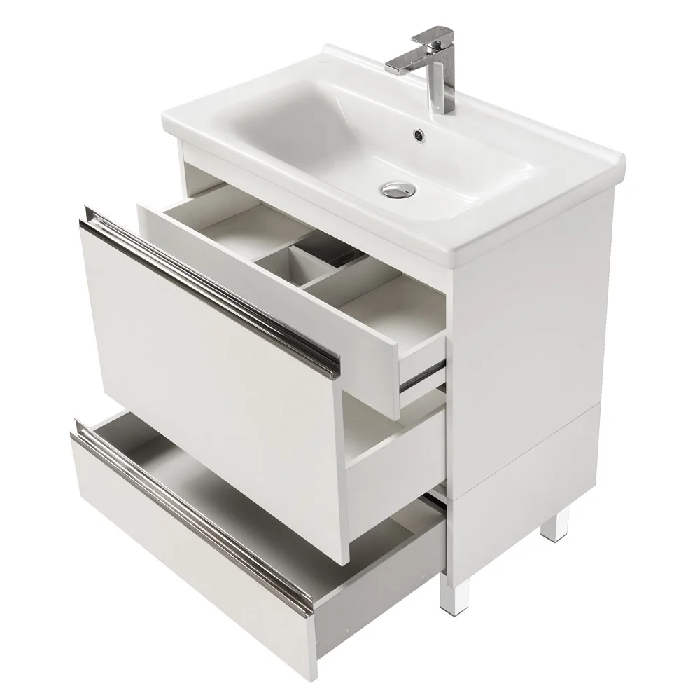 Коллекция Капри сочетает в себе современные тенденции мебели для ванных комнат: удобные профильные ручки, интегрированные в фасад, светодиодную подсветку