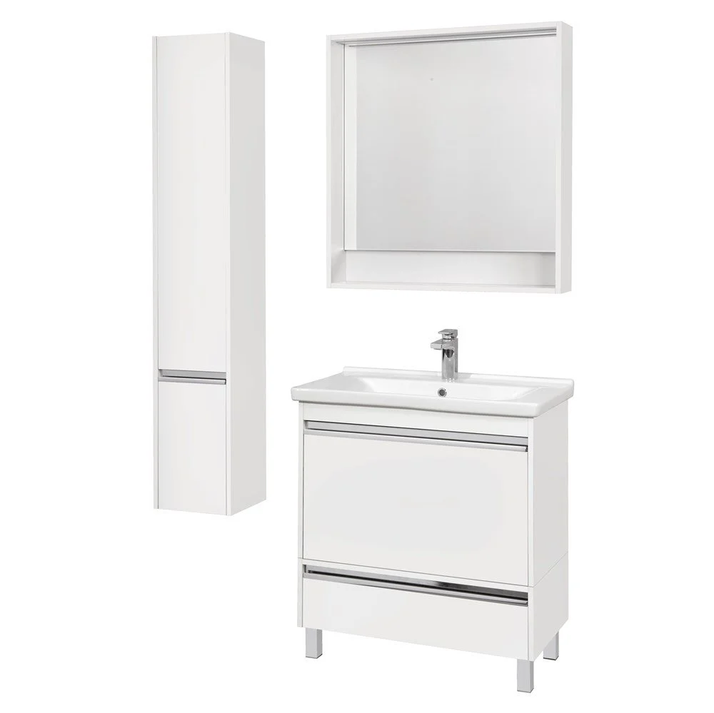 в зеркалах и зеркальных шкафах, актуальные цветовые решения и качественную фурнитуру. Коллекция выполнена в двух популярных размерах 600 мм и 800 мм. В размере 600 мм к тумбе предлагается зеркальный шкафчик, а в размере 800 мм - зеркало.