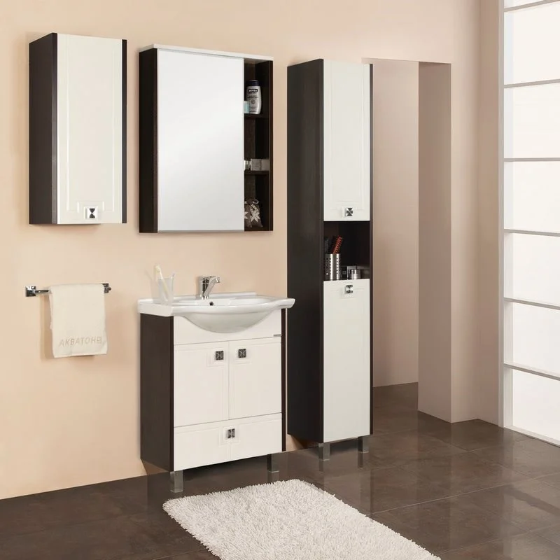 Доступная коллекция, предназначенная для небольших ванных комнат, украшенная узорами в стиле древнегреческого орнамента. В нем находит свое выражение вечное непрерывное движение. Тщательно продуманная конструкция и организация внутреннего пространства позволят навести порядок даже в небольшой ванной комнате. Тумба с удобной керамической раковиной шириной 65 см выпускается в двух модификациях: 60 М - с открытой нишей сбоку и распашным фасадом, за который установлена полка, КРИТ 60 Н - тумба без ниши с ящиком в нижней части и двумя створками вверху. Для комплектации можно выбрать зеркало со светильником или зеркальный шкаф с двумя стеклянными полочками. Зеркала можно дополнительно укомплектовать полками из ассортимента АКВАТОН. Еще больше возможностей дают дополнительные элементы коллекции - шкаф-колонна, подвесные одностворчатый и двустворчатые шкафы. В подвесных шкафах за створками установлены по 2 полки из ДСП. В колонне - за верхним фасадом - 2 стеклянные полки, а внизу - откидной фасад с бельевой корзиной.