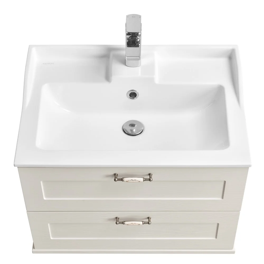 Коллекция Леон создана специально для любителей классического дизайна, предпочитающих современные материалы. Мебель отделана пленкой с фактурой под натуральное дерево, а раковина, изготовленная из литого мрамора, имеет изящные формы, пристенные бортики и площадки, которые делают ее очень удобной. В тумбе установлены 2 ящика, и помимо стандартного подключения водоснабжения и канализации (из стены) предусмотрена возможность подключения труб снизу. На изящной полочке зеркала можно разместить мелочи, которые всегда должны быть под рукой. В нижней части колонны установлена бельевая корзина, а в верхней - полки.