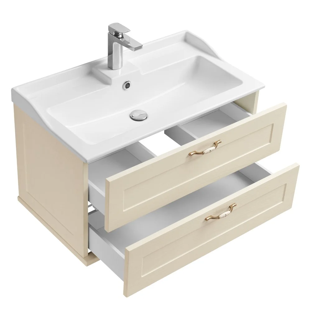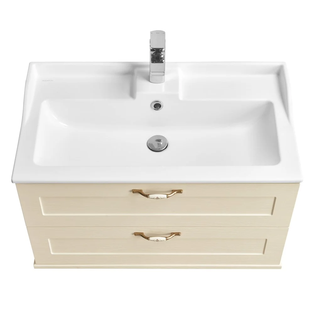 Коллекция Леон создана специально для любителей классического дизайна, предпочитающих современные материалы. Мебель отделана пленкой с фактурой под натуральное дерево, а раковина, изготовленная из литого мрамора, имеет изящные формы, пристенные бортики и площадки, которые делают ее очень удобной. В тумбе установлены 2 ящика, и помимо стандартного подключения водоснабжения и канализации (из стены) предусмотрена возможность подключения труб снизу. На изящной полочке зеркала можно разместить мелочи, которые всегда должны быть под рукой. В нижней части колонны установлена бельевая корзина, а в верхней - полки.