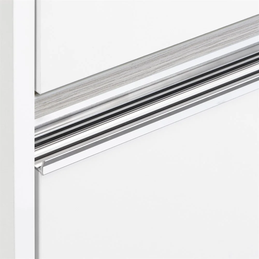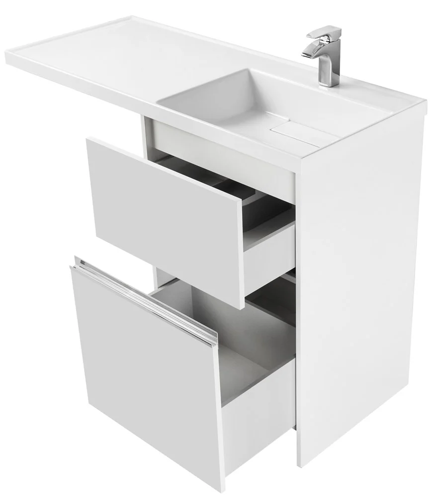 Верхний ящик открывается с помощью системы push-to-open, а нижний – за изящную удобную профильную хромированную ручку.
