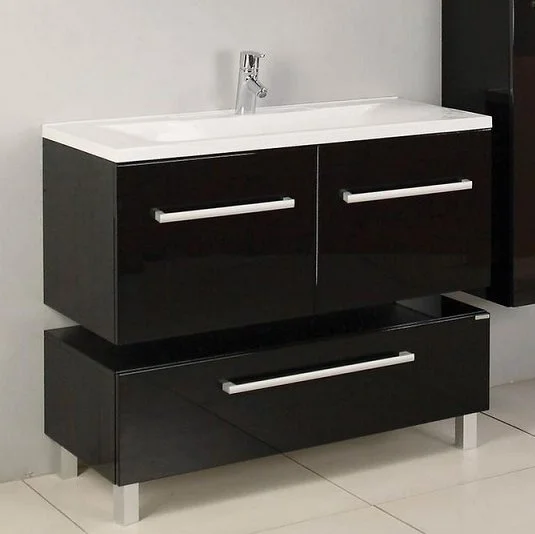 Центром коллекции является тумба. Тумба выпускается с выдвижным ящиком, оснащенным системой плавного закрывания и антискользящим ковриком. Тумба дополнительно оснащена полочками с рейлингом, расположенными над ящиком. На данной модели тумбы-умывальника дополнительно предусмотрено нижнее подключение труб водоснабжения и канализации! В комплектацию тумбы дополнительно включен СИФОН (производство Финляндия). Размер сифона подобран специально под параметры тумбы.