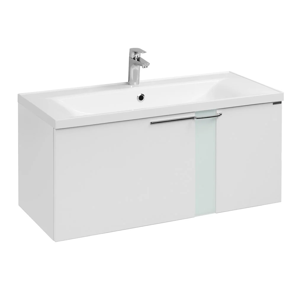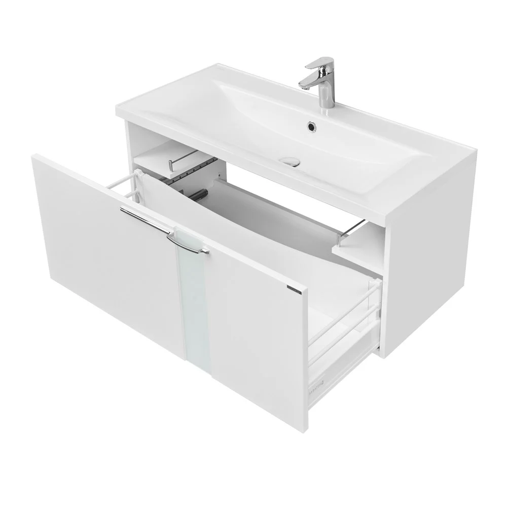 Коллекция МАРКО разработана специально для тех, кто ценит максимальный комфорт и лаконичный дизайн. Ее характеристики - прямые линии, безупречная отделка и качественная фурнитура. Коллекция разработана совместно итальянскими и российскими дизайнерами. Асимметричный дизайн лицевой фурнитуры подчеркивают стеклянные вставки, установленные на фасадах. В комплект входит тумба с раковиной из литого мрамора. В тумбе и комоде - по одному двустенному ящику, снабженному интегрированными доводчиками, обеспечивающими плавное закрывание. Комод может быть установлен как отдельно, так и служить опорой для тумбы. Этот вариант удобен если есть сомнение, что стена выдержит подвесную мебель. Для этого в комплектацию комода добавлены специальные силиконовые демпферы. Комод и тумба спроектированы таким образом, что будут гармонично смотреться в обоих случаях.