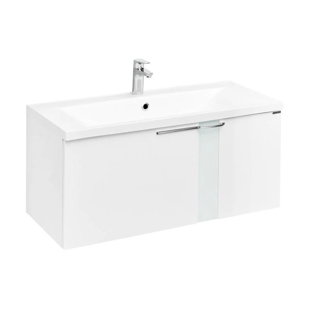 Коллекция МАРКО разработана специально для тех, кто ценит максимальный комфорт и лаконичный дизайн. Ее характеристики - прямые линии, безупречная отделка и качественная фурнитура. Коллекция разработана совместно итальянскими и российскими дизайнерами. Асимметричный дизайн лицевой фурнитуры подчеркивают стеклянные вставки, установленные на фасадах. В комплект входит тумба с раковиной из литого мрамора. В тумбе и комоде - по одному двустенному ящику, снабженному интегрированными доводчиками, обеспечивающими плавное закрывание. Комод может быть установлен как отдельно, так и служить опорой для тумбы. Этот вариант удобен если есть сомнение, что стена выдержит подвесную мебель. Для этого в комплектацию комода добавлены специальные силиконовые демпферы. Комод и тумба спроектированы таким образом, что будут гармонично смотреться в обоих случаях.