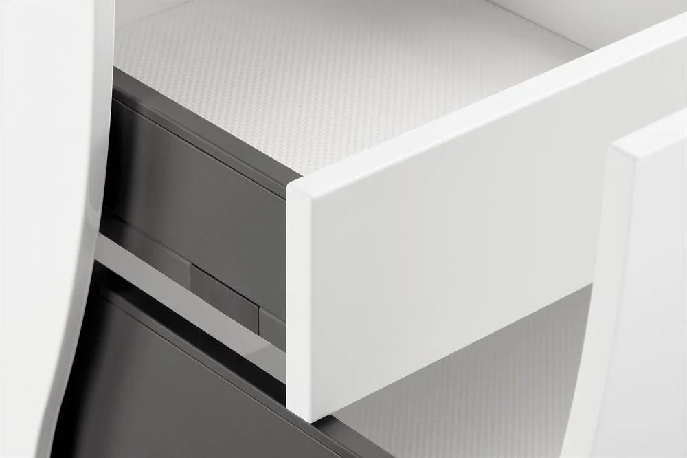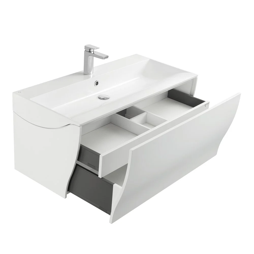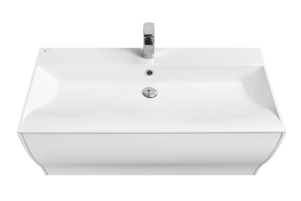 Созданная итальянским дизайнером Антонио Булло, Ондина сразу очаровывает природными мотивами, отраженными в плавности всех линий и форм как мебели, так и раковины, изготовленной из литого мрамора. Большое внимание уделено и комфорту использования. Ящики и полки расположены с учетом всех правил эргономики. Все открывается легко и бесшумно благодаря специальным гасителям удара, встроенным в петли и ящики Blum, и антискользящим коврикам во всех ящиках.