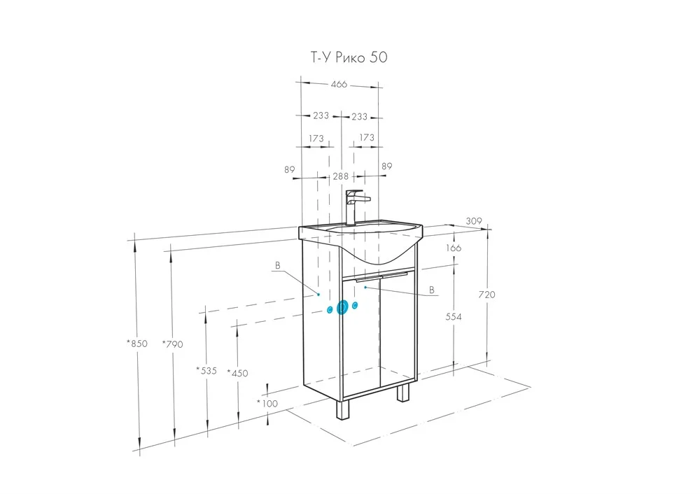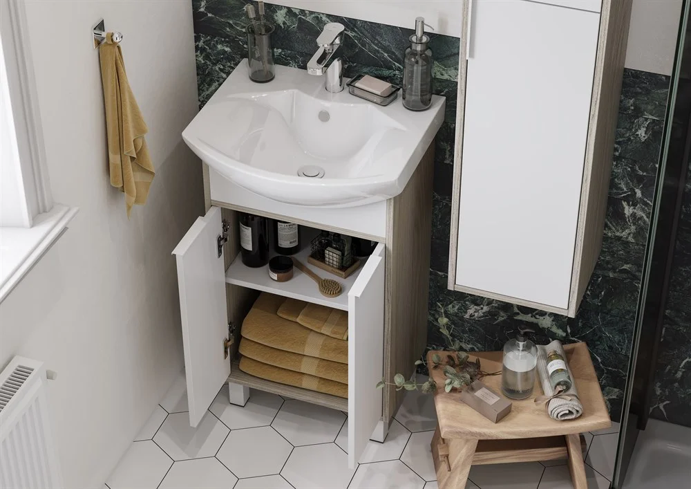 Для небольших пространств есть один универсальный рецепт создания гармоничного интерьера: простота и минимум сложных деталей. Комплект Рико 50 см - идеальное решение для компактных ванных комнат.