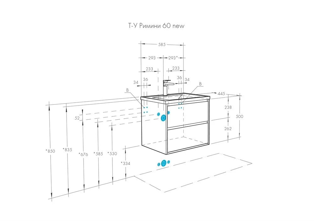 Тумба под раковину Aquaton Римини 60 белый глянец 1A226601RN010 NEW