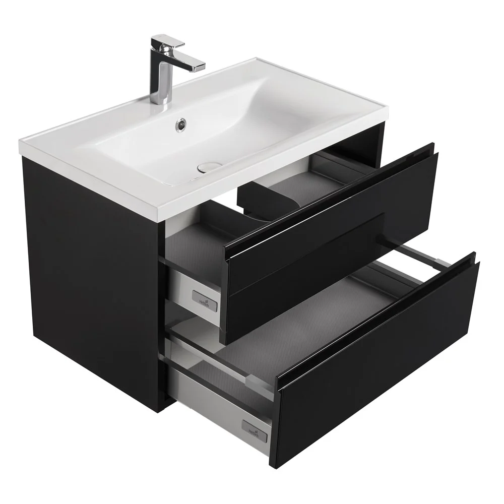 Лаконичная модель, созданная для тех, кто предпочитает строгий дизайн в безупречном исполнении. Поверхность фасадов удивляет элегантностью и безупречной ровностью. Этот эффект достигается благодаря стеклянным панелям, установленным на фасадах. В тумбе установлены два ящика, снабженные новейшей системой плавного закрывания. Нижний ящик предназначен для больших предметов, а верхний, имеющий удобную систему организации пространства, - для мелких аксессуаров. Тумба комплектуется удобной раковиной из литого мрамора, которая имеет глубокую чашу и выпускается в двух вариантах - для обычного слива или для механизма с донным клапаном. Шкаф можно, повернув его на 180 градусов, размещать как с левой, так и с правой стороны. На фасадах установлены большие зеркала, которые визуально расширяют пространство ванной комнаты. В зеркале за гравировкой установлена подсветка, которая управляется с помощью надежного датчика движения, что очень удобно во влажном помещении. Дополнительное преимущество зеркала - современная система п