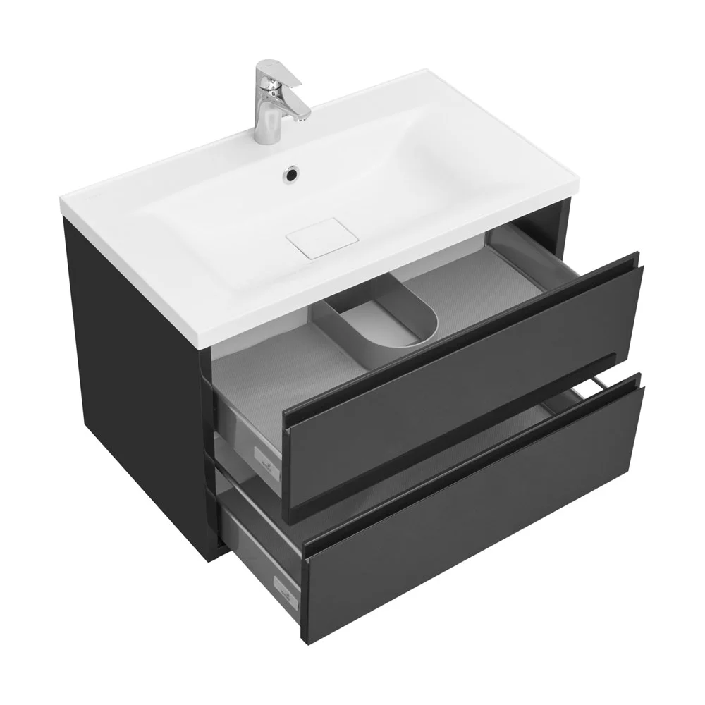Лаконичная модель, созданная для тех, кто предпочитает строгий дизайн в безупречном исполнении. Поверхность фасадов удивляет элегантностью и безупречной ровностью. Этот эффект достигается благодаря стеклянным панелям, установленным на фасадах. В тумбе установлены два ящика, снабженные системой плавного закрывания. Нижний ящик предназначен для больших предметов, а верхний, имеющий удобную систему организации пространства, - для мелких аксессуаров.