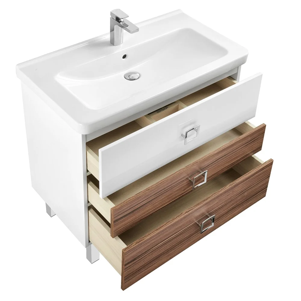 В коллекции сочетается два главных требования к мебели для ванных комнат: функциональность и дизайн. В тумбе, которая комплектуется раковиной CUBITO чешского производителя JIKA, два глубоких ящика, и один узкий (средний), что позволит грамотно разместить все предметы гигиены. Простые и лаконичные геометрические формы раковины CUBITO приятно удивят самого изысканного покупателя. А неизменно высокое качество позволит вам наслаждаться ею долгие годы. Зеркало, оснащенное выключателем, украшено гравировкой, которая подсвечивается изнутри встроенным светильником. К нему дополнительно предлагается стеклянная полка. Дополнительный функционал обеспечивает шкаф-колонна, с двумя компактными выдвижными ящиками и регулируемыми по высоте внутренними полками за распашным фасадом.
