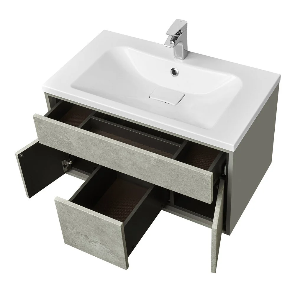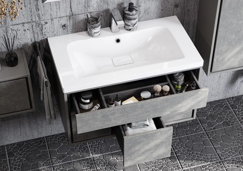 УЭЛЬС - это уникальная коллекция в стиле лофт, созданная нашими дизайнерами для истинных ценителей индустриального шика. Глубокий благородный цвет фасадов “Авеллино грей” и лаконичный дизайн создают особую атмосферу богемной свободы и ненавязчивого комфорта. Отсутствие лицевой фурнитуры делает возможным использование предметов коллекции в различных интерьерах ванной комнаты.