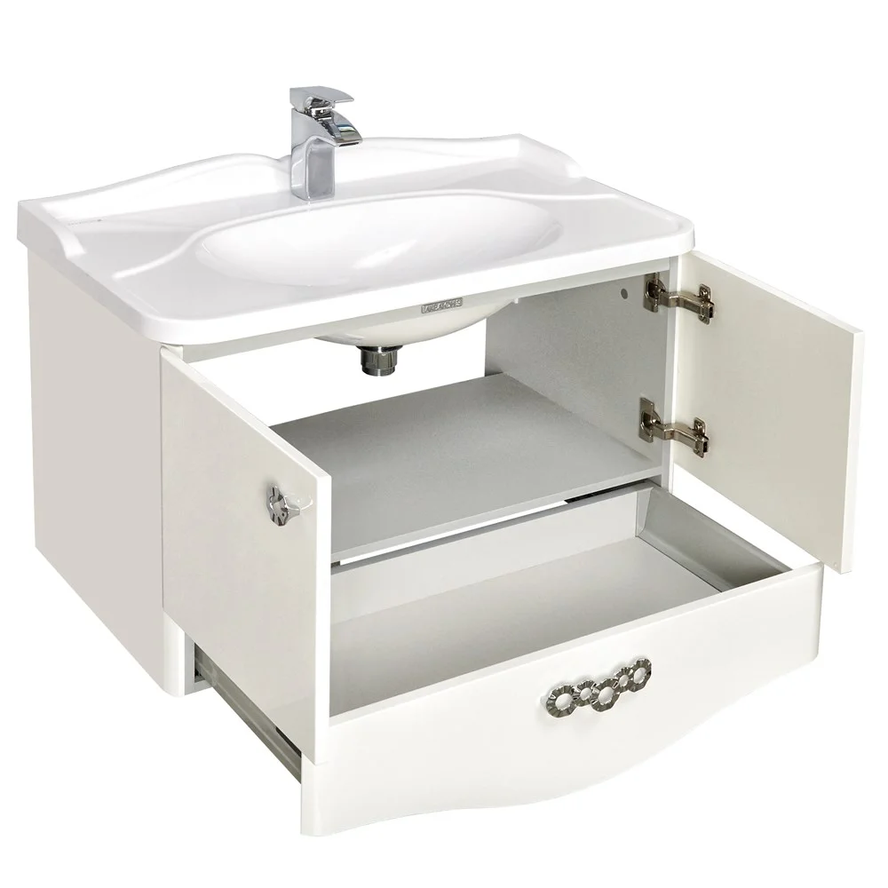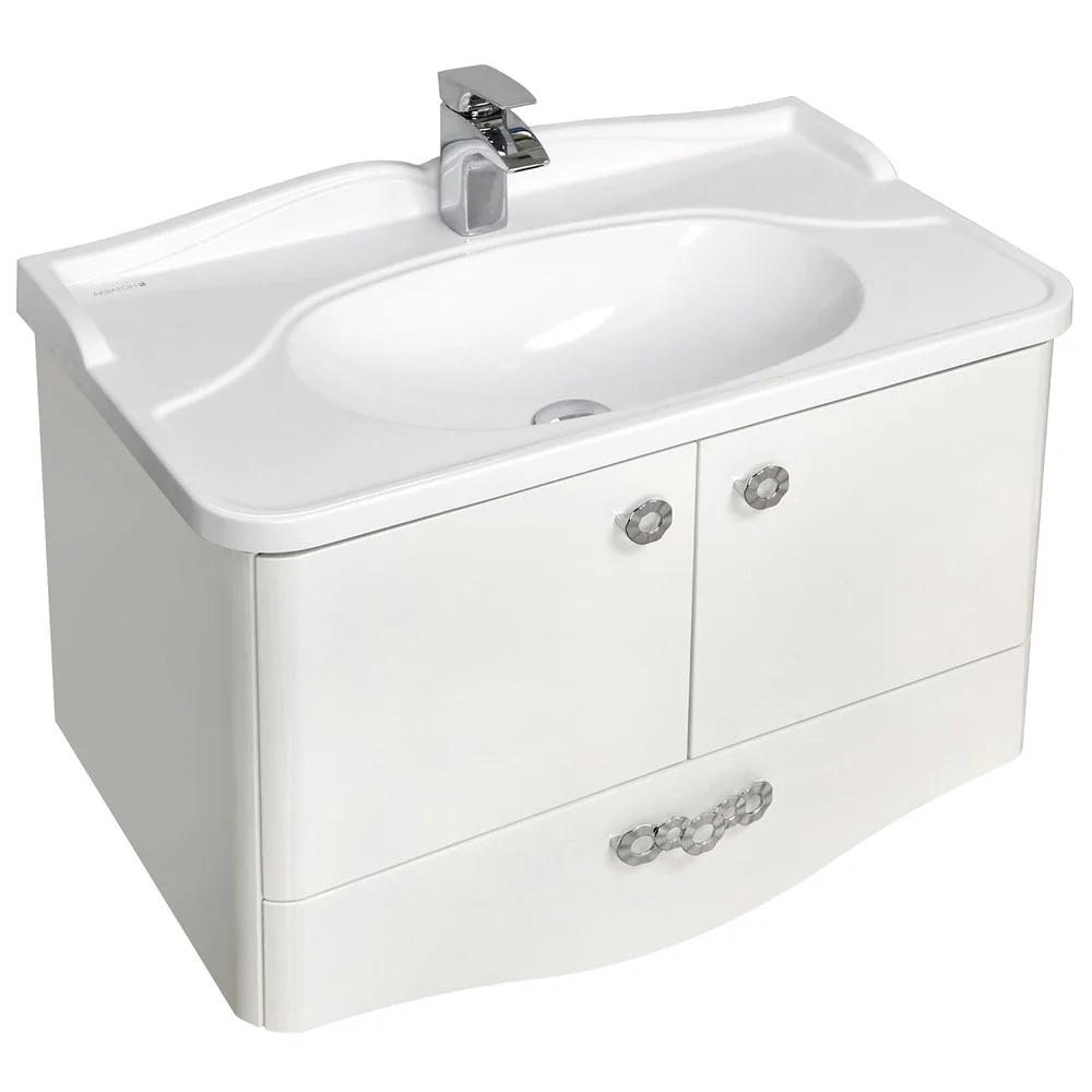 Эта коллекция выполнена в популярном стиле неоклассика. Классическая форма раковины соответствует всем внешним канонам этого стиля. Надежные регулируемые навесы, посредством которых тумбы крепятся к стене, обладают очень большим запасом прочности. Распашные фасады установлены на петли со встроенным механизмом плавного довода.