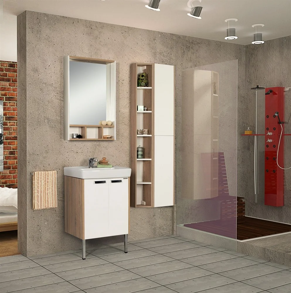 В основе коллекции лежит идеальное сочетание функциональности, дизайна и цены. Широкая цветовая гамма древесных декоров, оригинальная лицевая фурнитура европейских производителей и доступная цена делают эту коллекцию идеальным решением для небольшой ванной комнаты. А дополнительные системы хранения - подвесные шкафы и шкафы-колонны делают возможности этой коллекции безграничными.