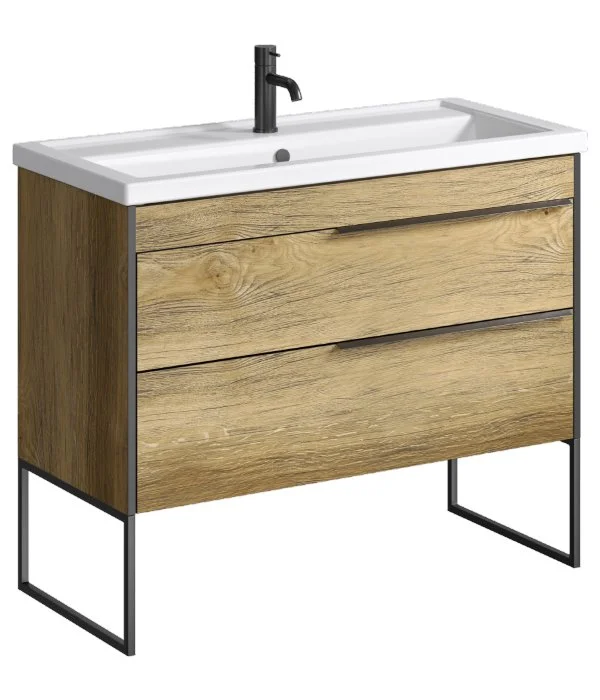 Тумба под раковину AQWELLA Fargo 100см FRG0110DB+FRGN440 напольная, дуб балтийский