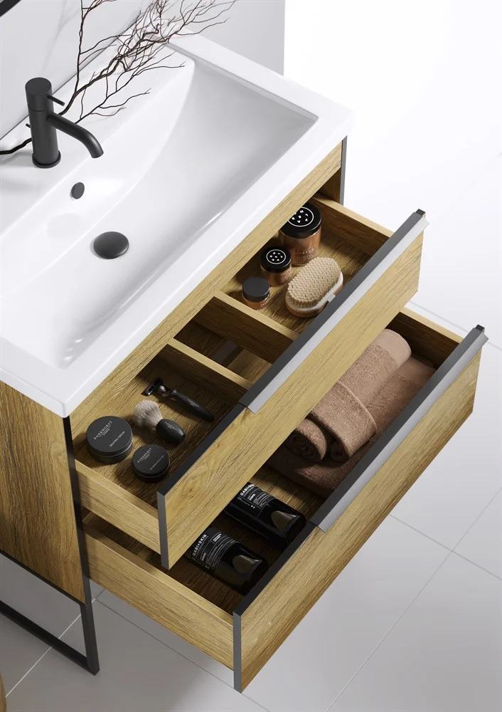 Тумба под раковину AQWELLA Fargo 80 см FRG0108DB+FRGN440 напольная, дуб балтийский