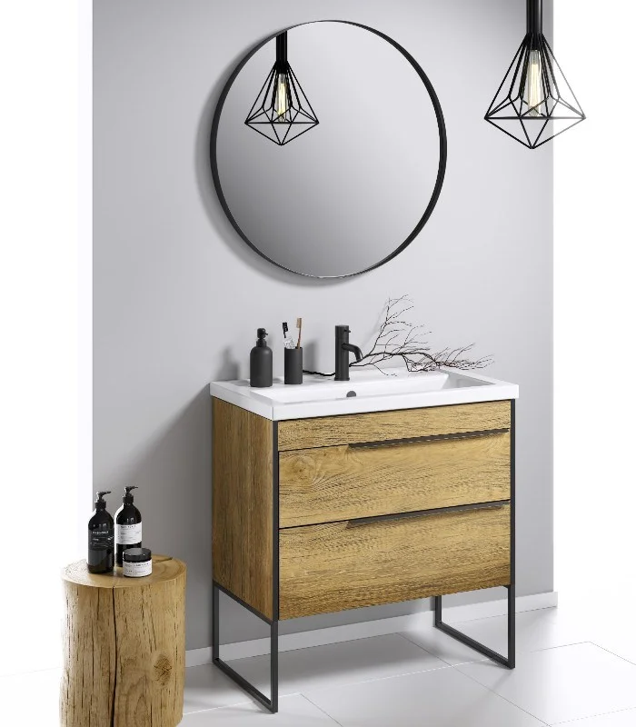 Тумба под раковину AQWELLA Fargo 80 см FRG0108DB+FRGN440 напольная, дуб балтийский
