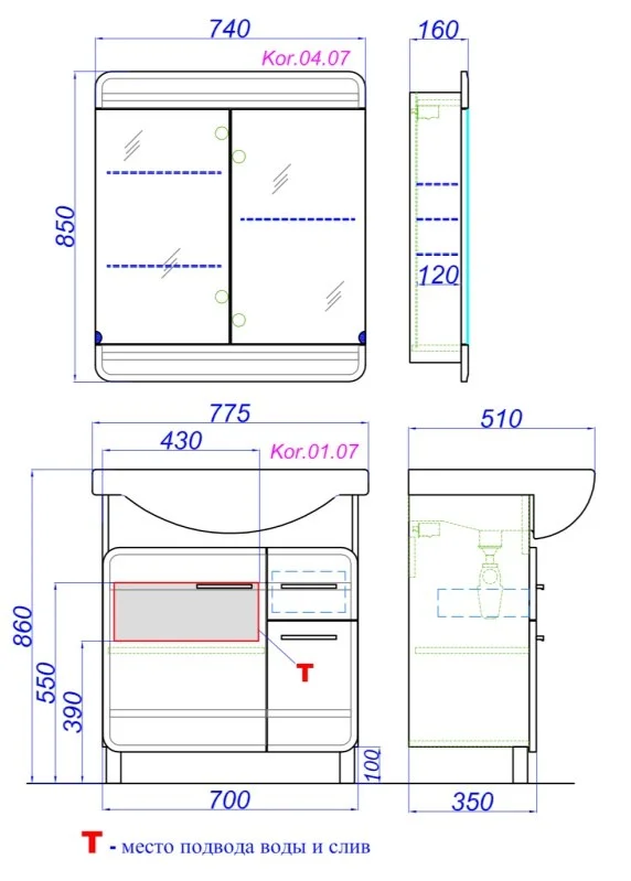 Тумба под раковину AQWELLA Корсика Kor.01.07
