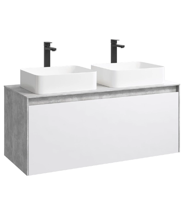 Тумба под раковину AQWELLA Mobi 120 см MOB0112BS+MOB0712W подвесная, бетон светлый