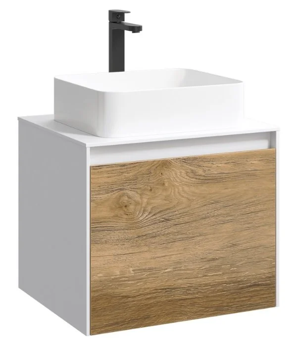 Тумба под раковину AQWELLA Mobi 60 см MOB0106W+MOB0706DB подвесная, белая