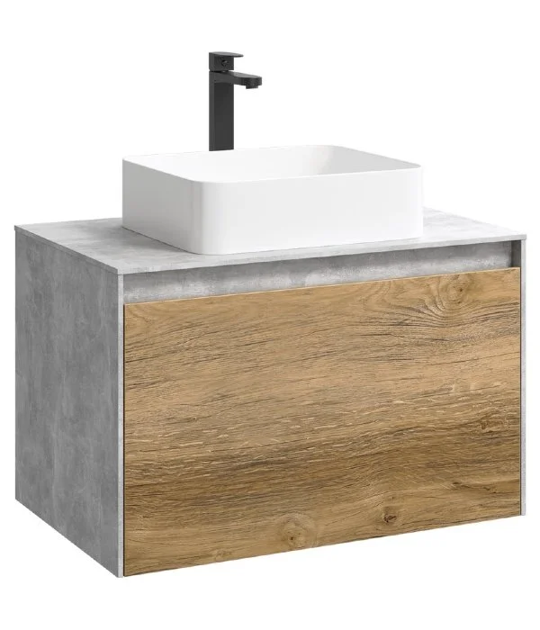 Тумба под раковину AQWELLA Mobi 80 см MOB0108BS+MOB0708DB подвесная, бетон светлый