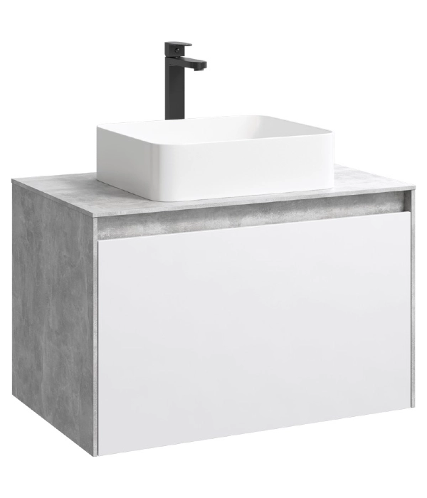 Тумба под раковину AQWELLA Mobi 80 см MOB0108BS+MOB0708W подвесная, бетон светлый