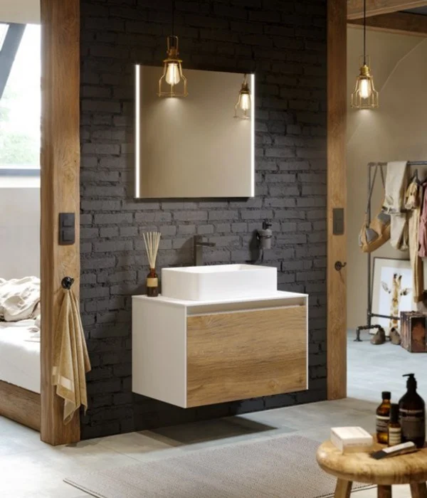Тумба под раковину AQWELLA Mobi 80 см MOB0108W+MOB0708BS подвесная, белая