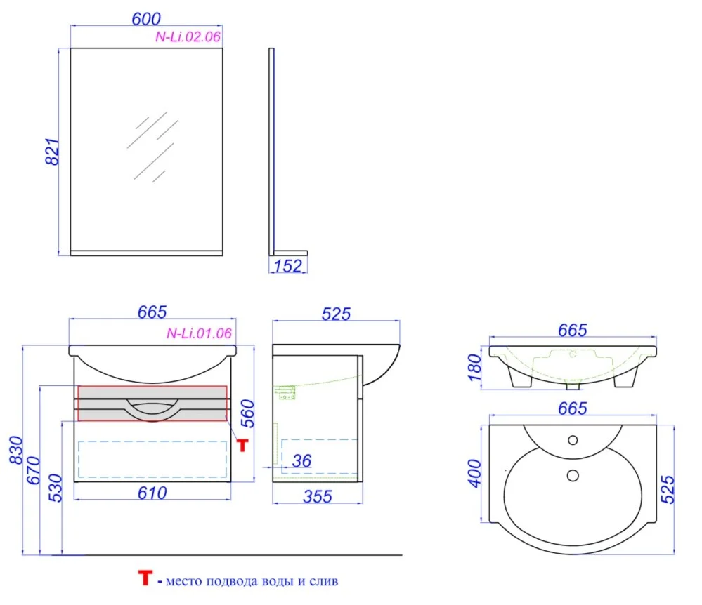 Тумба под раковину AQWELLA Н-Лайн N-Li.01.06