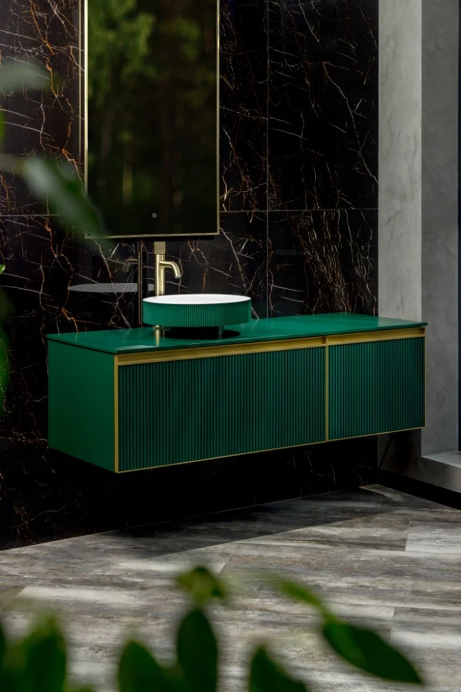 Тумба под раковину Armadi Art Quatro M2 140 см (100+40) 790-M2-140(100+40)-RAL6005 профиль GOLD, подвесная