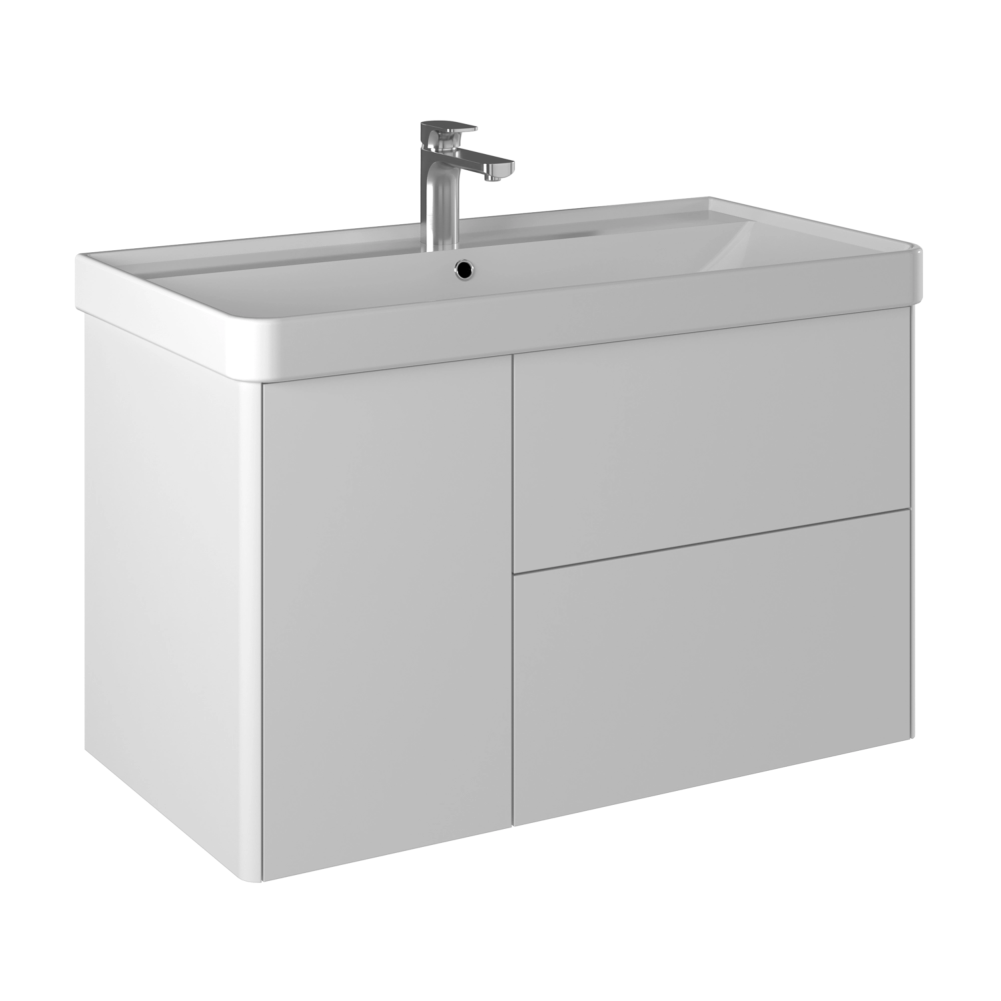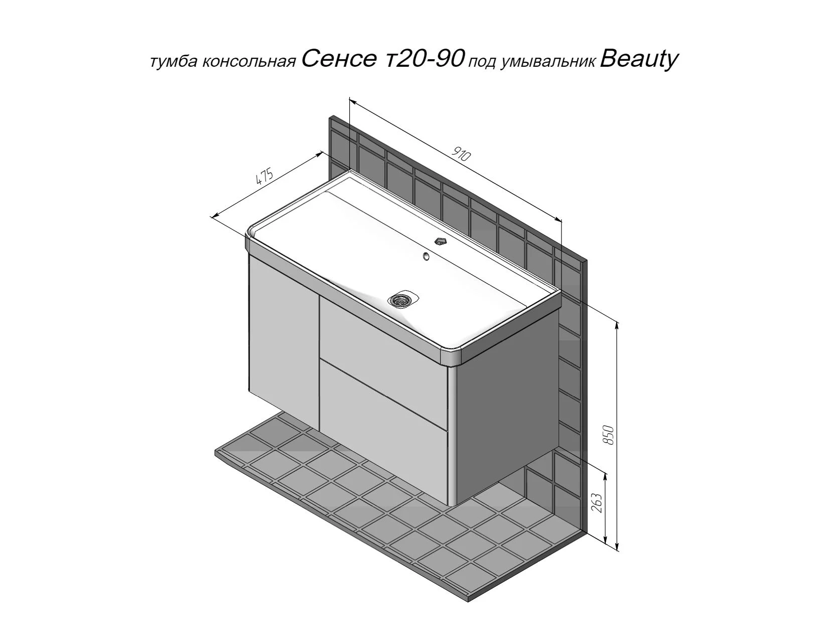 Корпус изготовлен из влагостойкого МДФ. Фасады выполнены из ЛДСП и покрыты итальянской эмалью (2 слоя эмали + 4 слоя грунта). Комплектуется фурнитурой Hettich с системой бесфурнитурного открывания push-to-open. Внутренняя отделка ящиков с текстурой дуб Веллингтон Табак. В комплект входит умывальник модели "Бьюти".