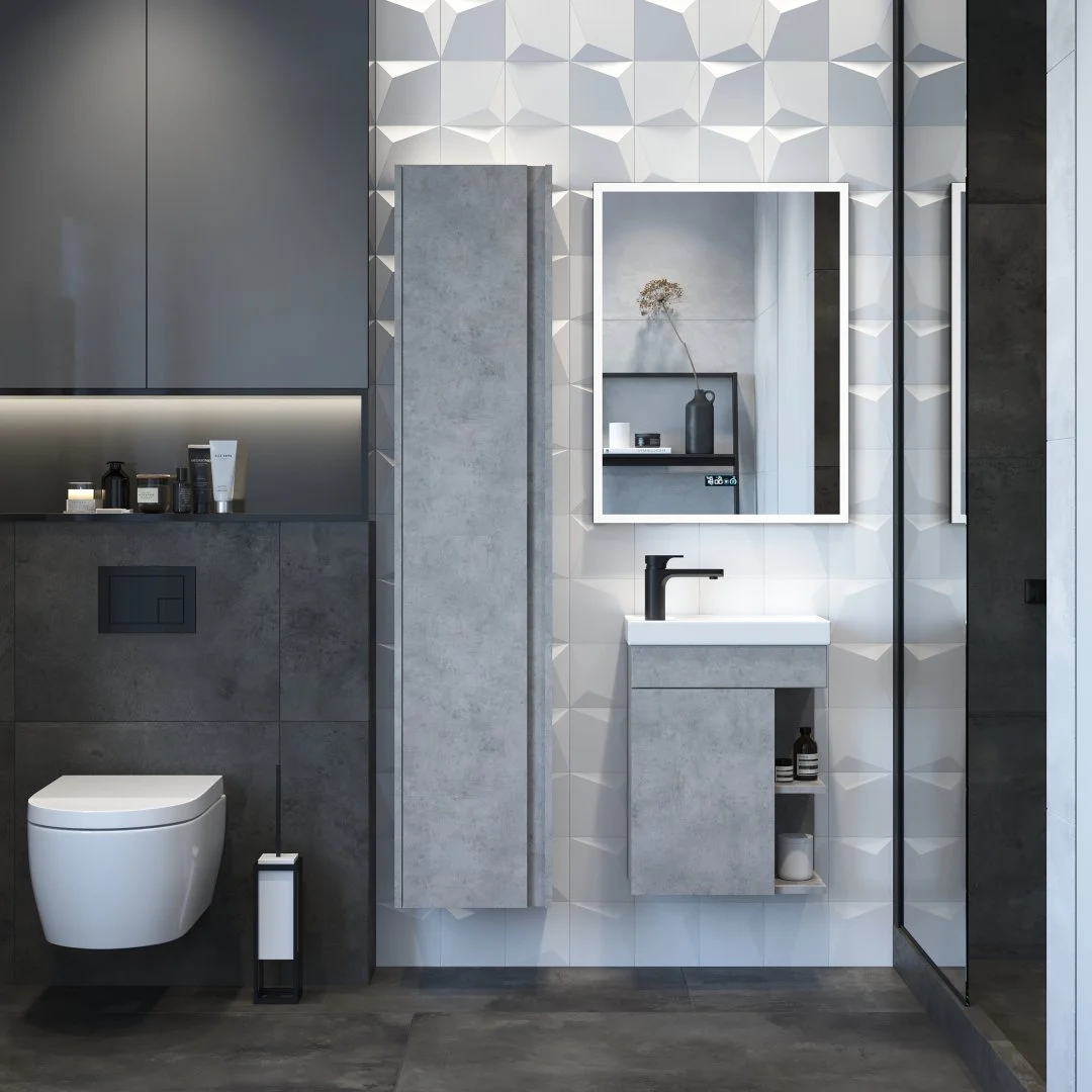 Серия Чикаго выполненная в цвете ‒ Бетон светло-серый , стильные металлические ручки матового черного цвета, интегрированные в фасад, позволяют сделать эксплуатацию мебели более удобной, актуальное цветовое решения и качественная фурнитура делают комплекты мебели Чикаго единым целым.