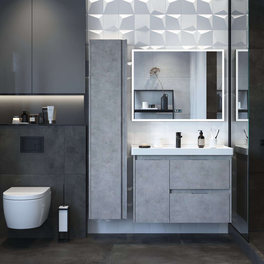 Серия Чикаго выполненная в цвете ‒ Бетон светло-серый , стильные металлические ручки матового черного цвета, интегрированные в фасад, позволяют сделать эксплуатацию мебели более удобной, актуальное цветовое решения и качественная фурнитура делают комплекты мебели Чикаго единым целым.