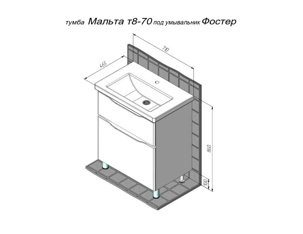 Тумба под раковину BRIZ Мальта 70 см 365 03-08070-06 00 БЕЛ, белый глянец
