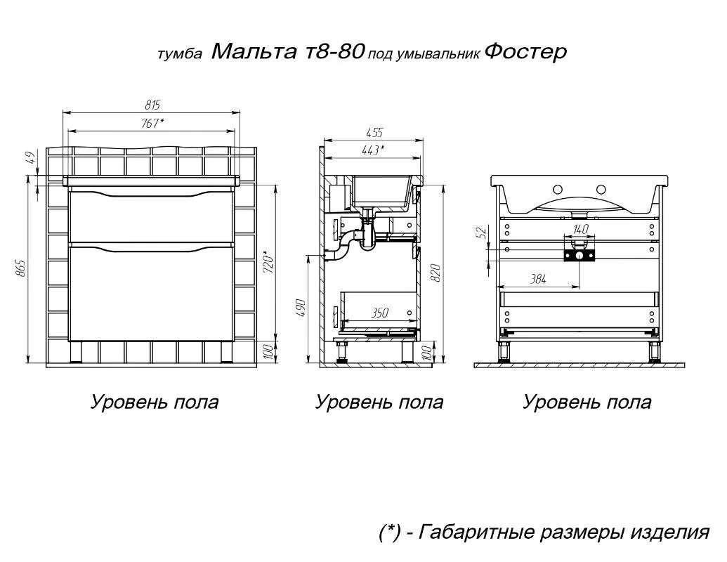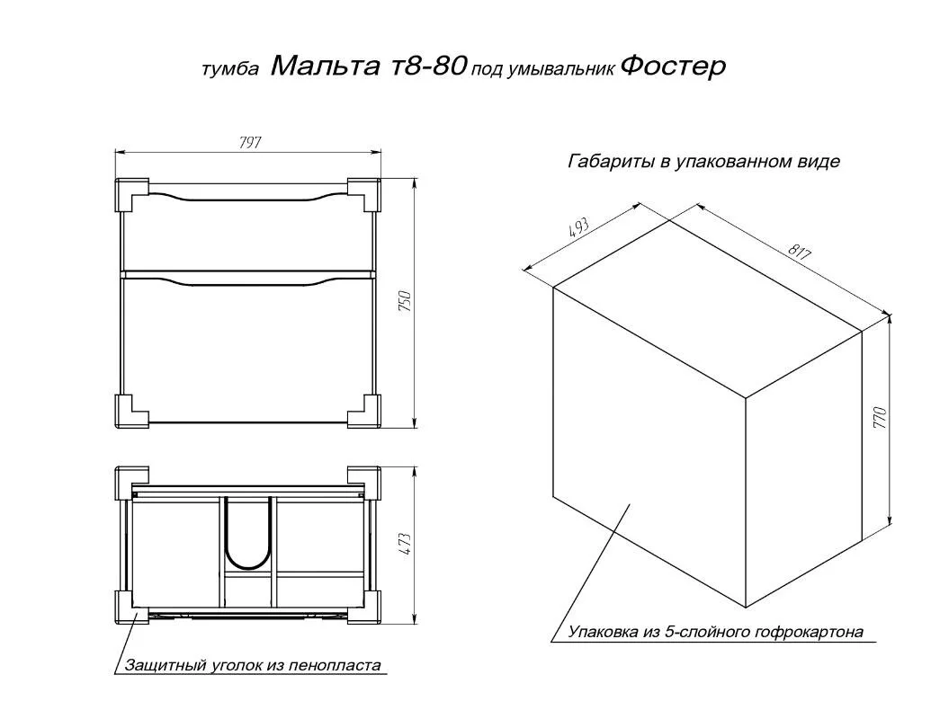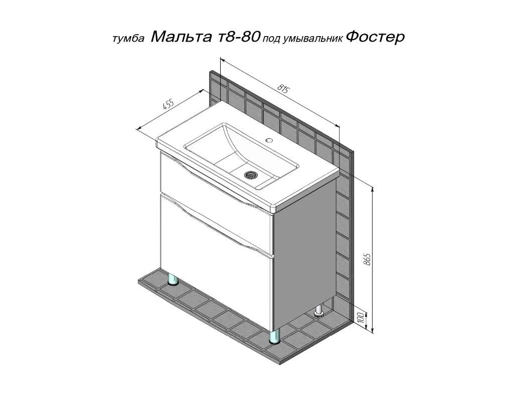 Тумба под раковину BRIZ Мальта 80 см 365 03-08080-06 00 БЕЛ, белый глянец