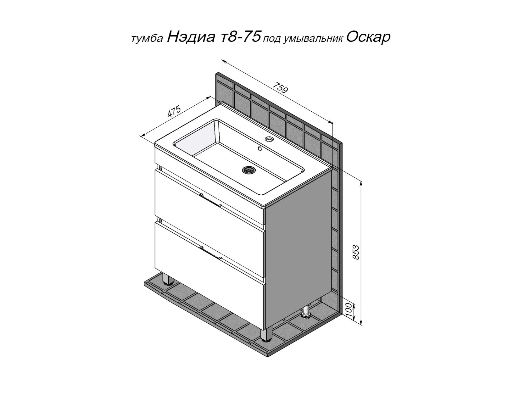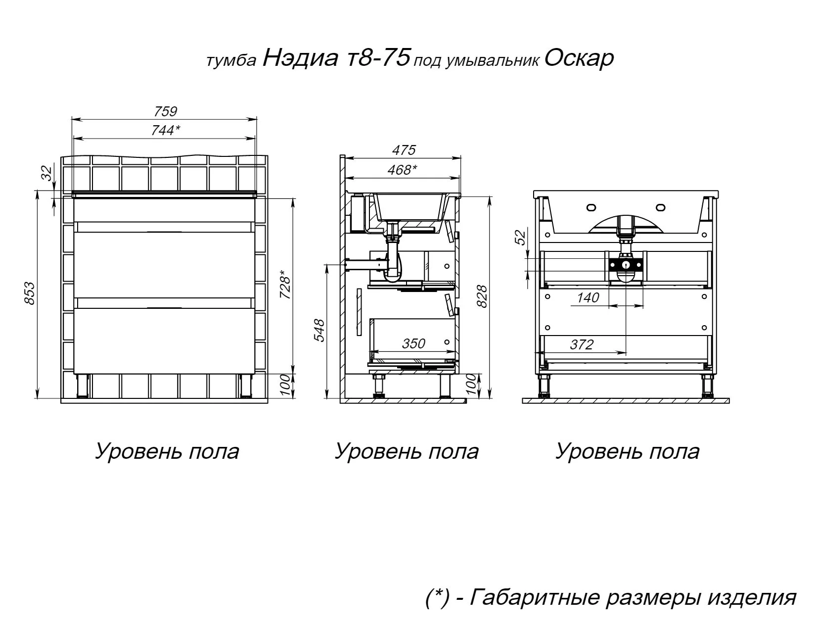 Тумба под раковину BRIZ Нэдиа 75 см 366 03-08075-21 00 БЕЛ (под раковинуОскар)