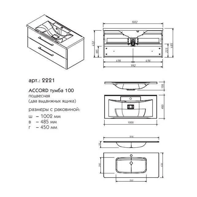 Тумба под раковину Caprigo ACCORD 100 подвесная 2221-TP810
