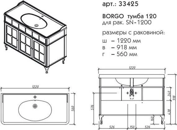 Тумба под раковину Caprigo BORGO 120 см 33416-B136