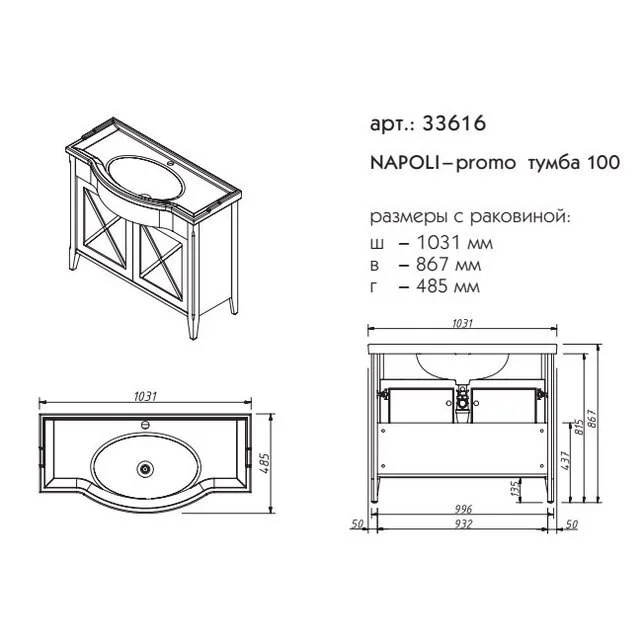 Тумба под раковину Caprigo NAPOLI 100