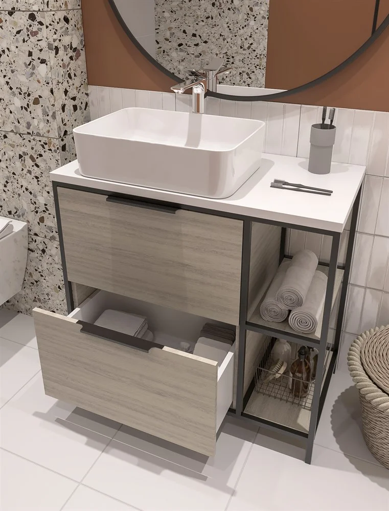 Тумба под раковину Cersanit BOSQUET 100 напольная для CREA 50 дуб 63013